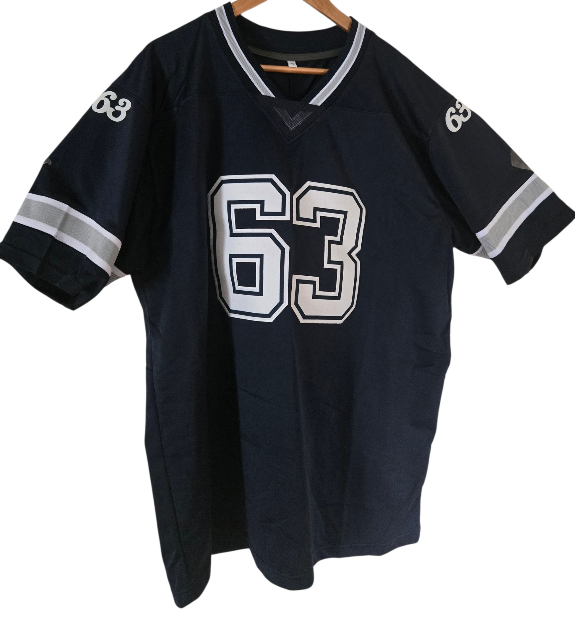 Das Football Trikot in Blau mit der Nummer 63 von Mücke besticht durch Material aus Polyester in den Größen XL und XXL. Perfekt für alle Sportbegeisterten, die Wert auf Komfort und Qualität legen.