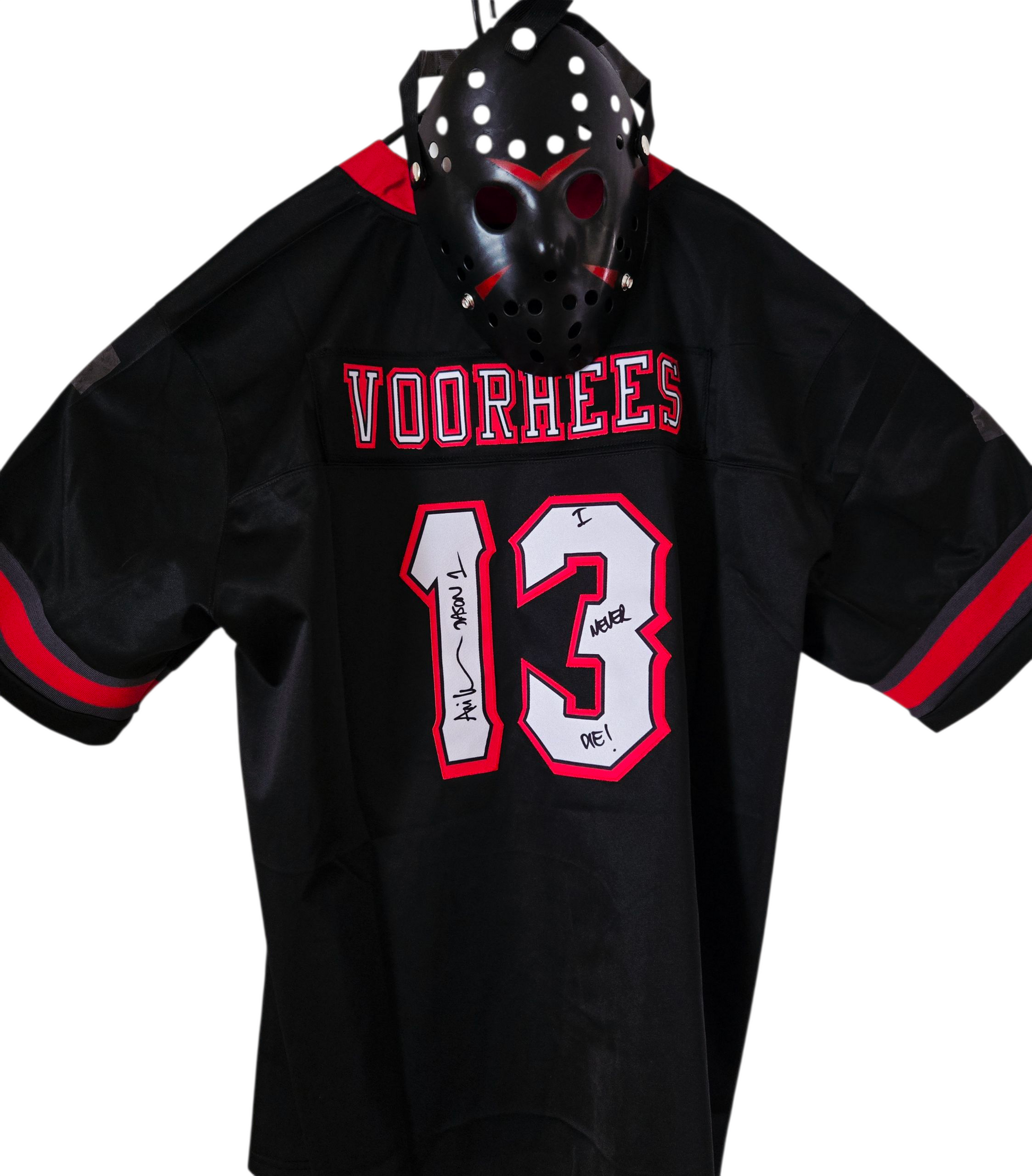 Dieses Halloween Karneval Set enthält ein Football Trikot mit dem ikonischen Nummer 13 des Serienkillers Jason Voorhees und einer passenden schwarzen Maske. Perfekt für Fans des Horror-Genres und für Kostümpartys. Erhältlich in Größe XL und XXL.